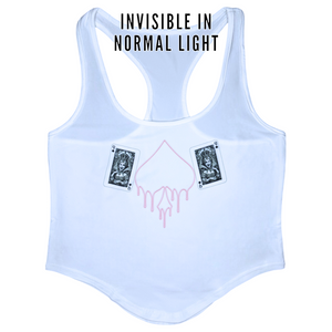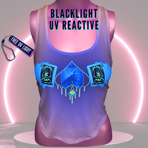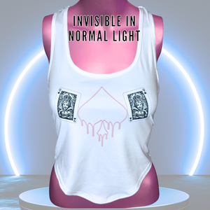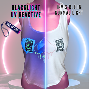 The UV Reactive art stays completely hidden in regular light and comes to life under Blacklights or UV Light(UV light included with every order!)