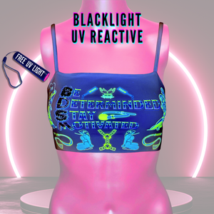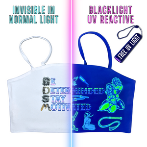 The UV-reactive art stays completely hidden in regular light and comes to life under blacklights or UV light. (Free UV light included with every order!)