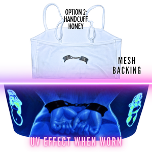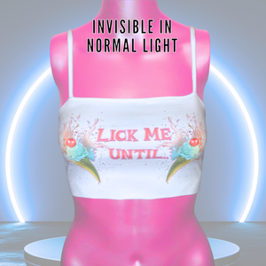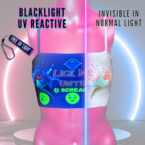 The back of this top is made of see-through Mesh that leaves little to the imagination, until the UV lights hit! An effect you've gotta see to believe... and even then, they might not believe what they're seeing. With 3 mesh-merizing styles to choose from(dad joke!) Check the pictures and choose your style.