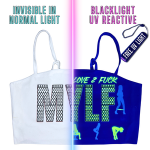 The UV-reactive art stays completely hidden in regular light and comes to life under blacklights or UV light. (Free UV light included with every order!)