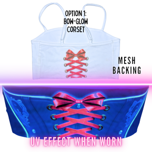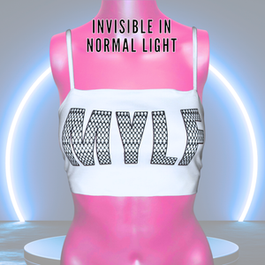 The back of this top is made of see-through Mesh that leaves little to the imagination, until the UV lights hit! An effect you've gotta see to believe... and even then, they might not believe what they're seeing. With 3 mesh-merizing styles to choose from(dad joke!) Check the pictures and choose your style.