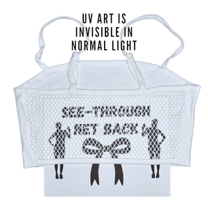 Speaking of the Net-Back, we’ve got 3 different UV options for you to choose from. All options remain invisible until you're under UV light. Check the pictures for details.