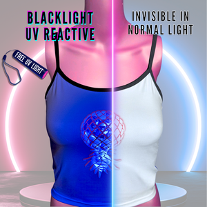The UV Reactive art stays completely hidden in regular light and comes to life under Blacklights or UV Light(UV light included with every order!)