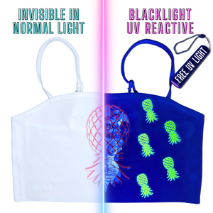 The UV-reactive art stays completely hidden in regular light and comes to life under blacklights or UV light. (Free UV light included with every order!)
