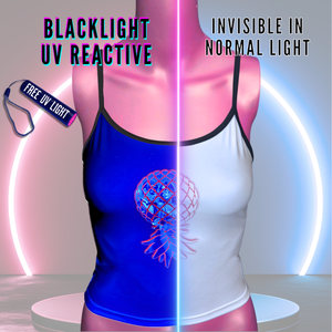 The UV Reactive art stays completely hidden in regular light and comes to life under Blacklights or UV Light(UV light included with every order!)