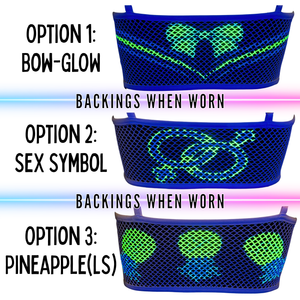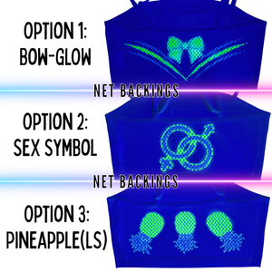 Speaking of the Net-Back, we’ve got 3 different UV options for you to choose from. All options remain invisible until you're under UV light. Check the pictures for details.