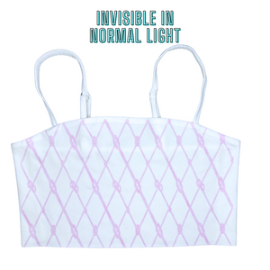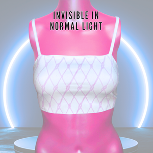 The back of this top is made of see-through Mesh that leaves little to the imagination, until the UV lights hit! An effect you've gotta see to believe... and even then, they might not believe what they're seeing. With 3 mesh-merizing styles to choose from(dad joke!) Check the pictures and choose your style.
