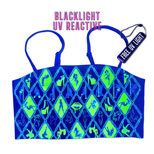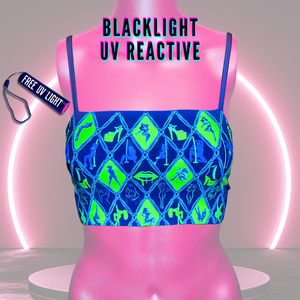 The back of this top is made of see-through Mesh that leaves little to the imagination, until the UV lights hit! An effect you've gotta see to believe... and even then, they might not believe what they're seeing. With 3 mesh-merizing styles to choose from(dad joke!) Check the pictures and choose your style.