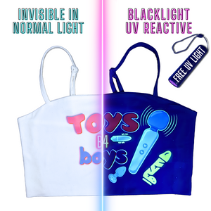 The UV-reactive art stays completely hidden in regular light and comes to life under blacklights or UV light. (Free UV light included with every order!)
