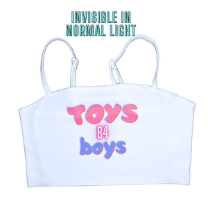 Speaking of the Net-Back, we’ve got 3 different UV options for you to choose from. All options remain invisible until you're under UV light. Check the pictures for details.